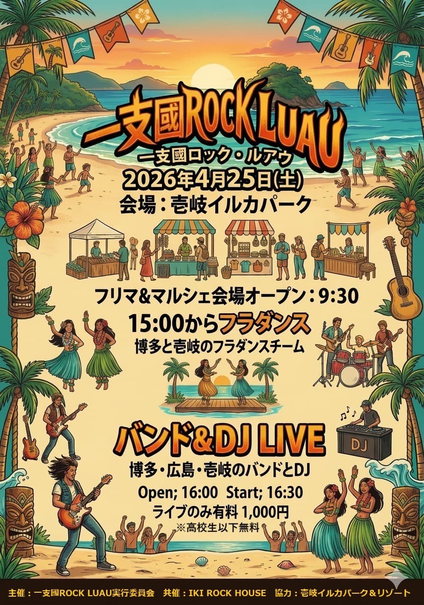 9:30壱岐イルカパーク&リゾートバンド&DJライブのみ1,000円